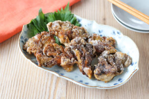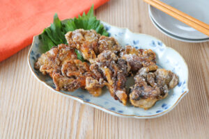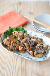 しょうゆと酒で下味をつけて、片栗粉をつけて揚げた、