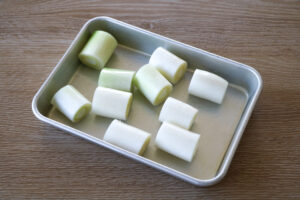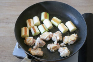 ここでは焼き色を付けて香ばしさを出します。火は通らなくてOK!