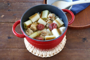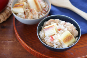 『上州ねぎと鶏肉の梅炊き込みごはん』の作り方